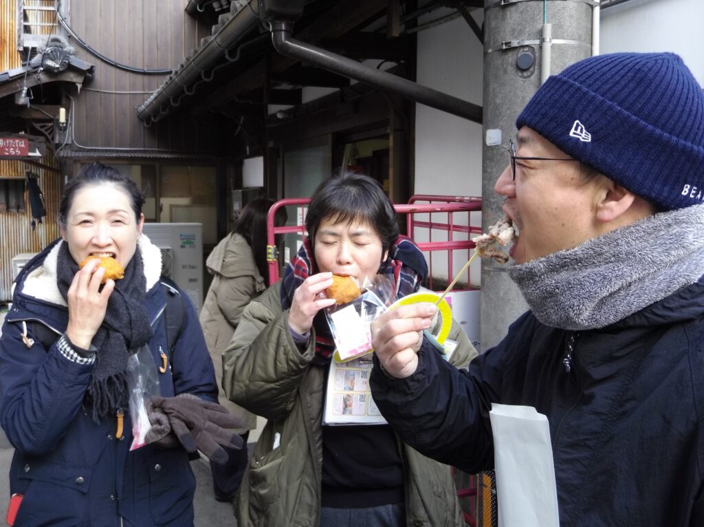 こちらでも、かまぼこや天ぷらを頬張る人たちの姿が見られました。