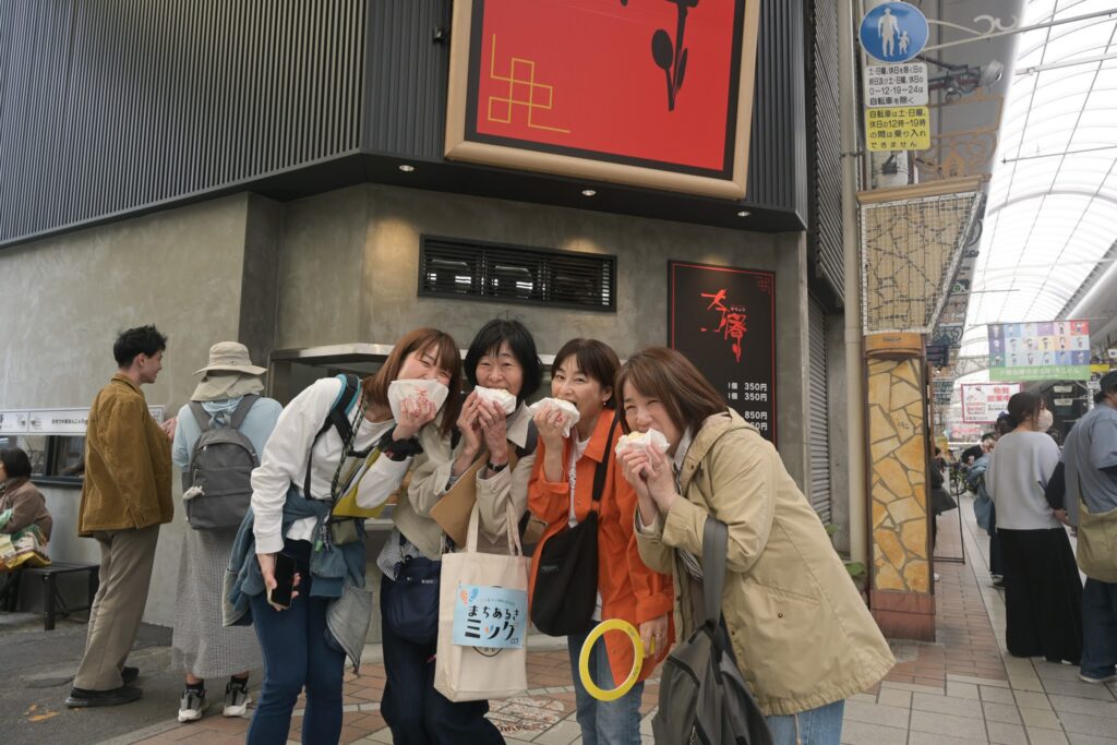 ホカホカの中華まんをほおばりながら、みんなで笑顔の写真を撮る姿が印象的でした。