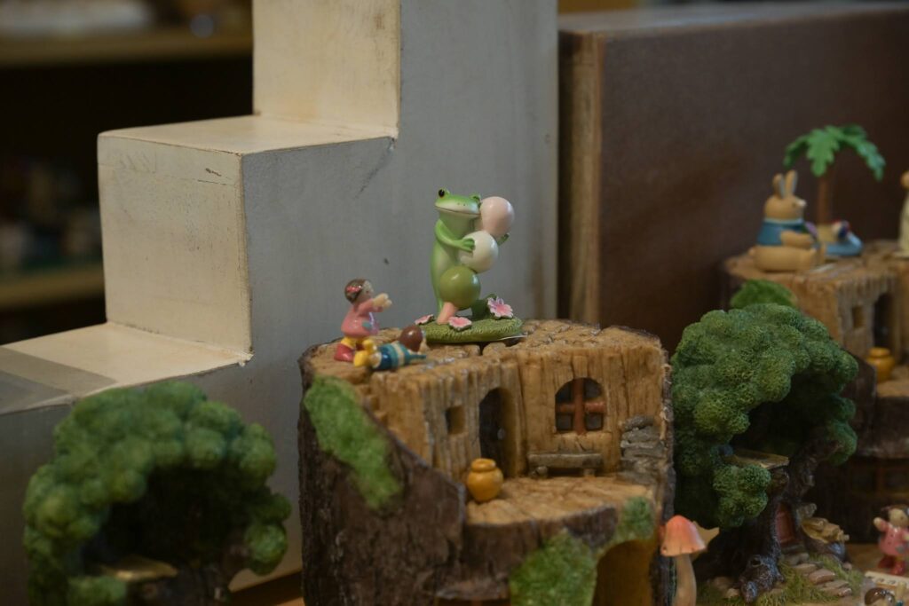 今回のミッションは、店内にある「団子好きのカエル」の前で写真を撮ること。